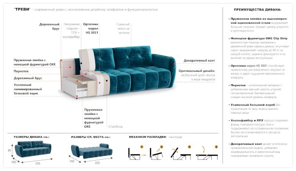 Диван Треви-2 (Империал) продается в интернет-магазине mebelin-egorevsk.ru по цене 92 146 руб. Есть доставка по Егорьевску и Московской области. Возможность подъема на этаж и сборки уточняйте у менеджера по телефону 8(800)505-27-11.